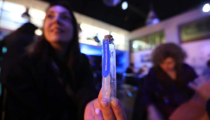 In many cases, the conversation half way down focused on the preliminary result: a small glass bottle with a label and a cork with a little water in it. The owner – apart from the artist himself – is actually the only one who has
