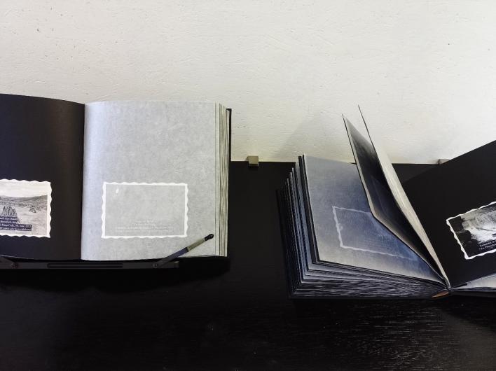 Two photobooks | title blind embossed on front cover (280 mm x 265 mm x 50 mm) and two cassettes for the photobooks, title blind embossed on the side De Boeckenherrebergh | Ruth Bonnewel.