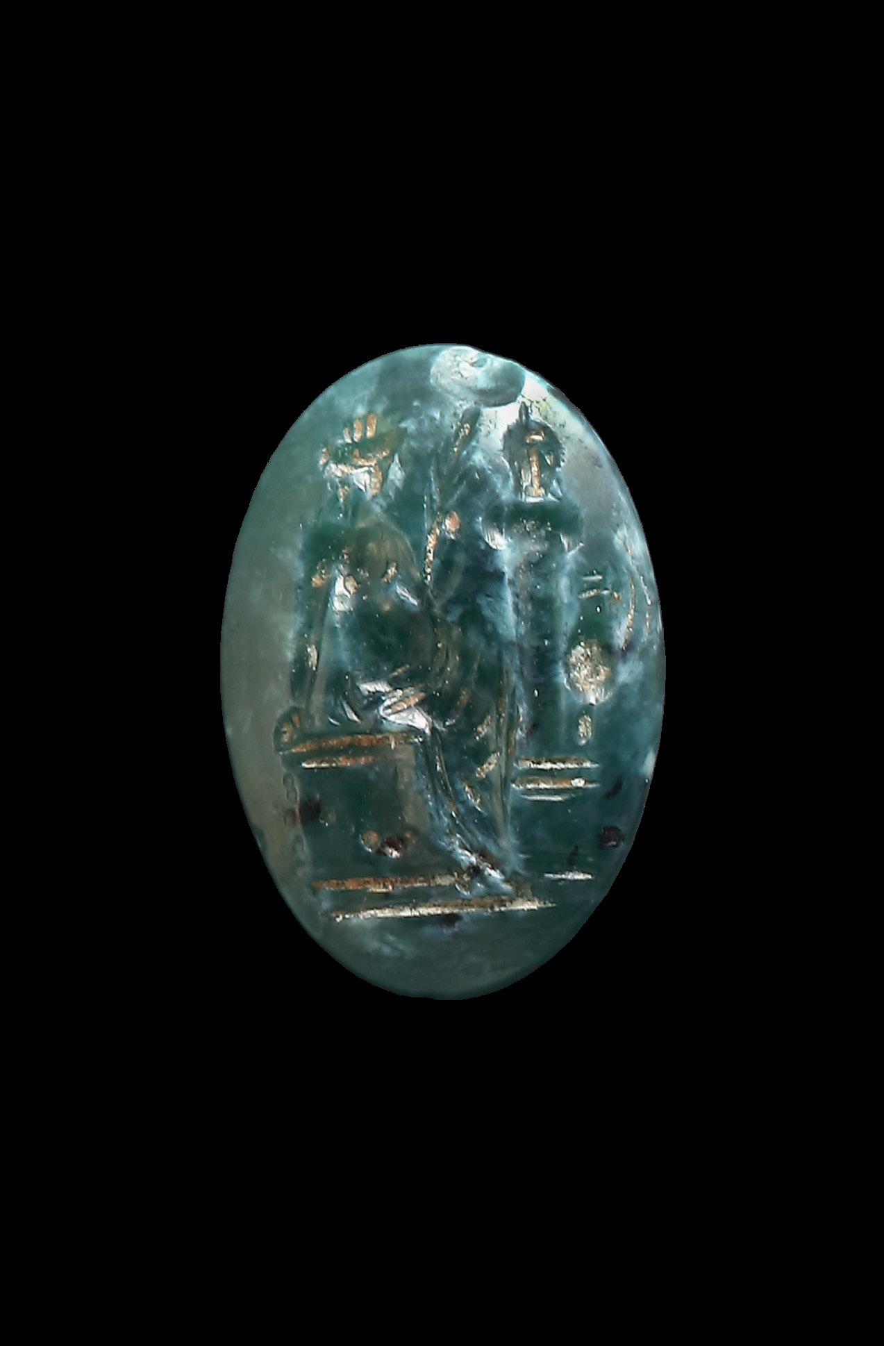 H. 1,0 cm | B. 0,7 cm | Chrome chalcedony | Late Hellenistic to Roman Early Imperial | 1st century B.C. - 1st century A.D.