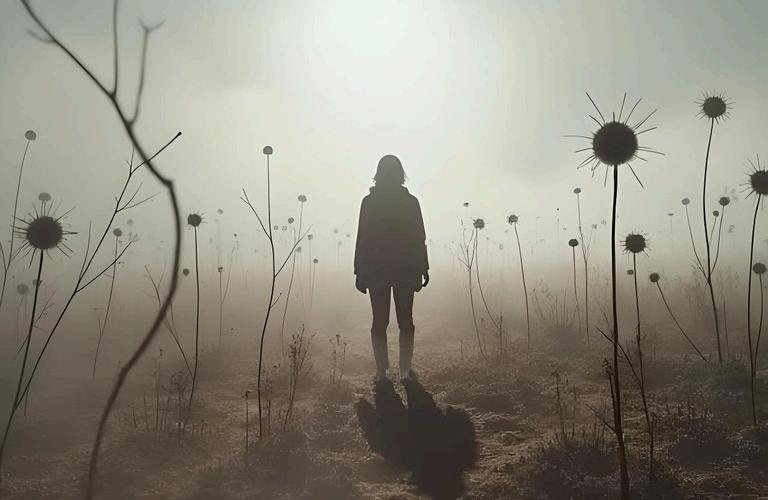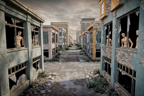 Use "muted colors," "eerie atmospheres," and "distorted figures" for a haunting, dystopian feel. Incorporate "decayed textures" and "soft focus" to create a sense of desolation.