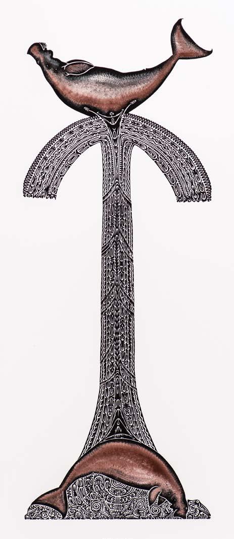 The significance of Alick Tipoti’s art reaches far beyond Australia’s cultural heritage. It belongs to a global resurgence of art practice connected to cultural traditions that are formally protected under the United Nations Educational, Scientific, and Cultural Organisation’s (UNESCO’s) 2003 ConventionfortheSafeguarding oftheIntangibleCulturalHeritage. This Convention seeks to preserve not just the material aspects of cultural traditions, such as rock art and artefacts, but also immaterial traditions such as song, dance, storytelling, and knowledge. The Convention regards the significance of intangible cultural heritage as a mainspring of cultural diversity and a guarantee of sustainable interdependence between intangible cultural heritage and the tangible cultural and natural heritage. It is the essential interconnectedness of all aspects of life, such as in Zenadh Kes cosmology, that inspires ethical attitudes towards sustainable life for the future.