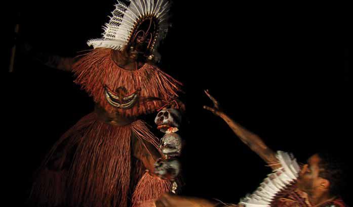 secret. Sesserae transformed into a willy wagtail to escape retribution. He did not entirely evade punishment however, because he was henceforth condemned to never again take human form. If Tipoti’s umay masks have a sense of the austere sentinel about them, this is perhaps because they are watching you! Umay masks are now part of Tipoti’s dance choreography and represent a new chapter in reinterpreting ancient stories to sustain a moral framework for the present.
