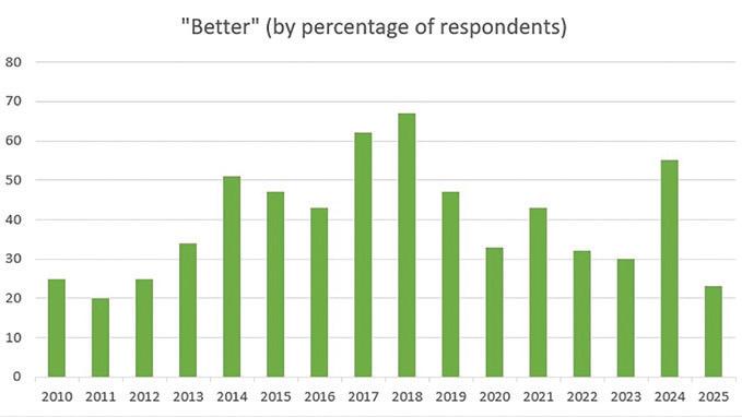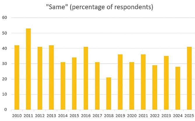 A prominent producer member commented, “The project delays with owner issues will have a lesser impact on our performance.” A consultant who expressed no opinion on the direction in the coming year blamed “too much political uncertainty.”