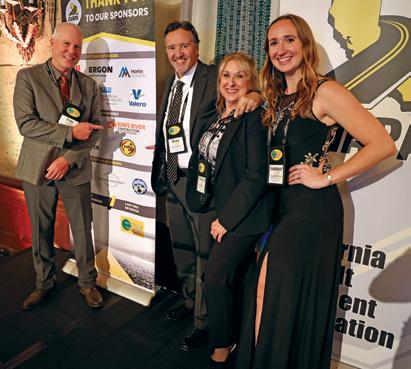 the coming year, and they were approved by acclimation. The meeting marked the last as a board member for Jeff Benedict with Valero, a past chairman, who announced he was retiring. He was replaced on the board by Gary Houston, who has been active on several committees and also is a trustee overseeing the association’s charitable arm, the California Asphalt Research & Education (CARE) Foundation. One of the beneficiaries of the CARE Foundation, the Women of Asphalt California Branch, was represented at the dinner by Cathrina Dmytrow, who is co-chair along with Sarah Hartz of Caltrans.