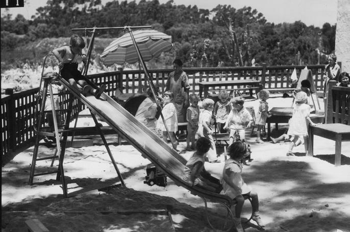 Children playing on a playground provided for them during the California Pacific International Exposition held May - November 1935 and February - September 1936. It was held in Balboa Park, which had also been the site of the earlier PanamaCalifornia Exposition in 1915. The Exposition was held to promote San Diego and support its economy and had hundreds of exhibits on history, the arts, horticulture, ethnic cultures, science, and industry.