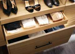 DESIGN DETAILS: Natural finish; aluminum frame drawer fronts with back-painted glass; slide-out drawers; slanted shoe shelves; ribbon lighting.