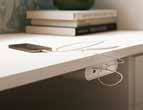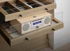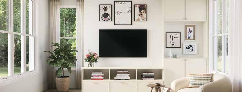D. Drawer with ventilation. Opposite page: Media solution in Misty Orchard and Ash with lighting, molding, and Suite (hidden) hardware.