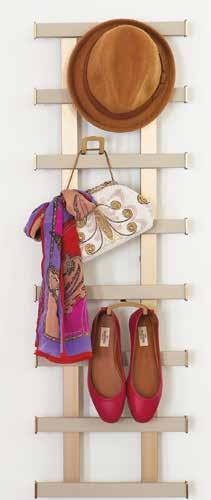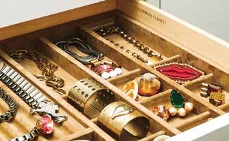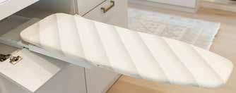 DESIGN DETAILS: A. Pull-out scarf rack. B. Maddox wall organizer. C. Tilt-out hamper with removable bag. D. Microsuede jewelry drawer insert. E. Pull-out, swiveling ironing board.