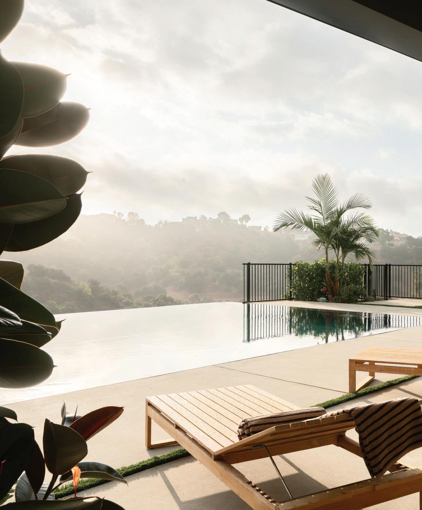 Lounge chairs provide canyon views over an infinity-edge pool at a home that embodies a quintessential indooroutdoor lifestyle.