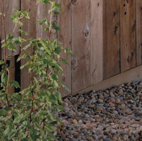 reminiscent of naturally weathered wood. The main hall is lined with charred cedar (shou sugi ban), while hand-troweled, custom plaster walls add depth, shimmering softly as the evening light moves through the house.