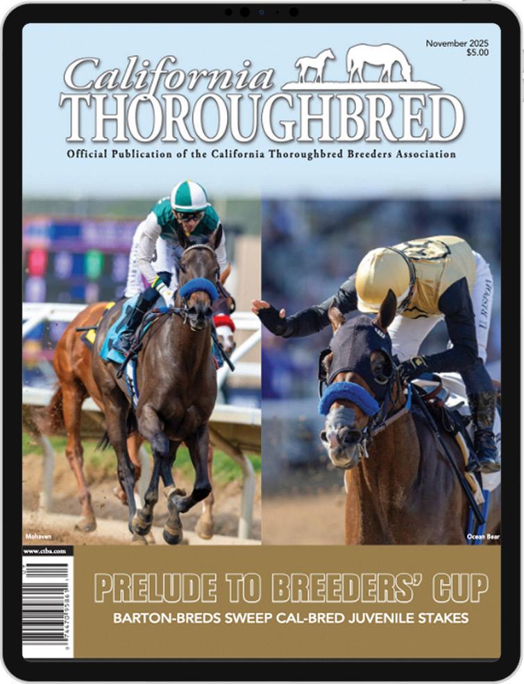 The official magazine of California Thoroughbred Breeders Association, a non-profit corporation dedicated to the production of better Thoroughbred horses for better Thoroughbred racing, published by Blood-Horse, LLC.