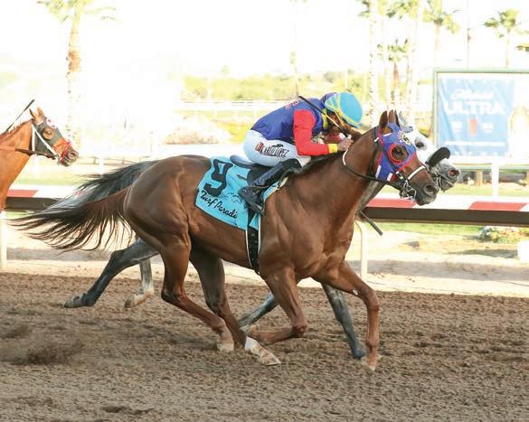 Sent away at 26-1, Distant Fleet covered the six furlongs in 1:07.58. He was winning his fifth race and third in a row. The triple came at Turf Paradise. Raymond Valerio trains Distant Fleet for owner Luis Ruiz. Turner Shiew bred the son of Stay Thirsty—Kowboy’s Gigi, by Kodiak Kowboy. Ruiz claimed Distant Fleet for $6,250 at Los Alamitos last September.