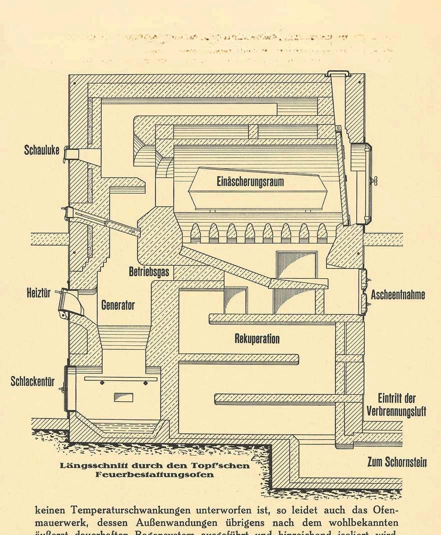 Criada por Johann Andreas Topf (1816-1891) em 1878, a Topf&Söhne começou por ser uma empresa de fabricação de sistemas para destilaria que se estabeleceu nos arredores de Erfurt, na Alemanha. Em 1914, quando já trabalhavam na fábrica cerca de quinhentas pessoas, foi criado um departamento dedicado a fornos para crematórios, que ganhou especial importância após a contratação do projectista e engenheiro mecânico Kurt Prüfer (1891-1952)