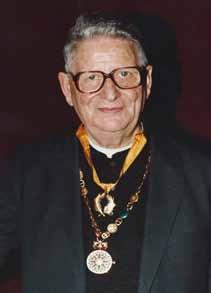 O presidente da Câmara Municipal de Lisboa, Nuno Abecasis, durante a cerimónia de imposição da Medalha de Prata de Mérito Municipal, ao reitor do colégio universitário Pio XII, Padre Joaquim António de Aguiar. (Foto: F. Gonçalves, Arquivo Municipal de Lisboa)