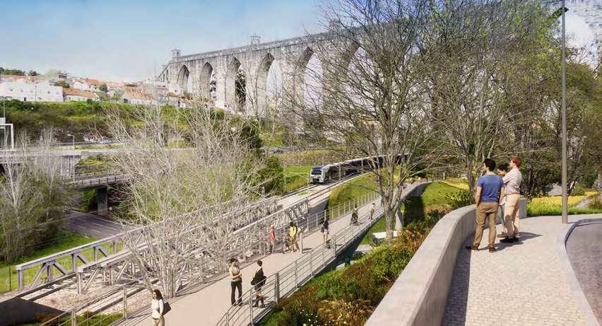 We are developing an integrated plan for this valley, focused on harmonising works involving public space, improving pedestrian connectivity, and completing a continuous green corridor. At the lower end, the valley will have a new metro station, around which one of the city’s main transport hubs will be created. This hub will include a new railway station with a direct connection between the Cascais line and the Cintura line, and a public transport line, on a dedicated site, serving Ajuda and Belém. The entire area will be the focus of a project to redesign public space, ensuring consistency and harmony in a series of works in the lower end of Alcântara and connecting and joining urban networks that are currently disconnected by creating a continuous network of renewed public spaces. This will improve pedestrian accessibility and cycle paths between the neighbourhoods that line Avenida de Ceuta and both slopes of the valley, as well as consolidate the green corridor of the Alcântara Valley.