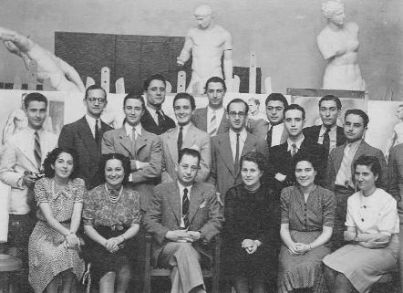 ◊ Nuno Teotónio Pereira ( la do meio, segundo à esquerda) com colegas na EBAL, 1941. Arquivo Pessoal NTP.