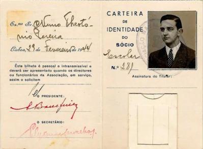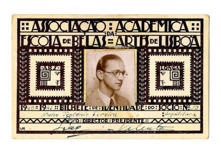 ◊ Cartão da Associação Académica da Escola de Belas Artes de Lisboa. Sócio n.º10, curso de Arquitetura, 1940. Arquivo Pessoal NTP.