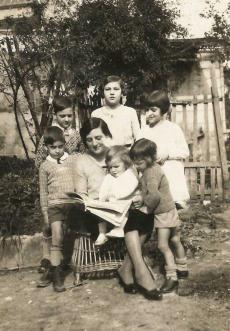 ◊ Nuno Teotónio Pereira (em cima, primeiro à esquerda) com a mãe e os seus cinco irmãos: Maria Alice, Maria Teresa, Luís, João e Alberto, 1929-31. Arquivo Pessoal NTP.