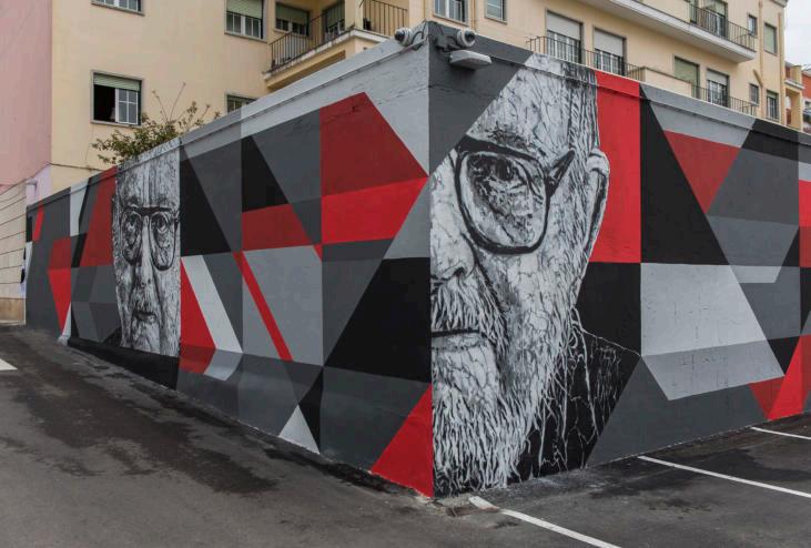 ◊ Mural homenagem a Nuno Teotónio Pereira em Alvalade, da autoria de João Samina, 2017. Junta de Freguesia de Alvalade.