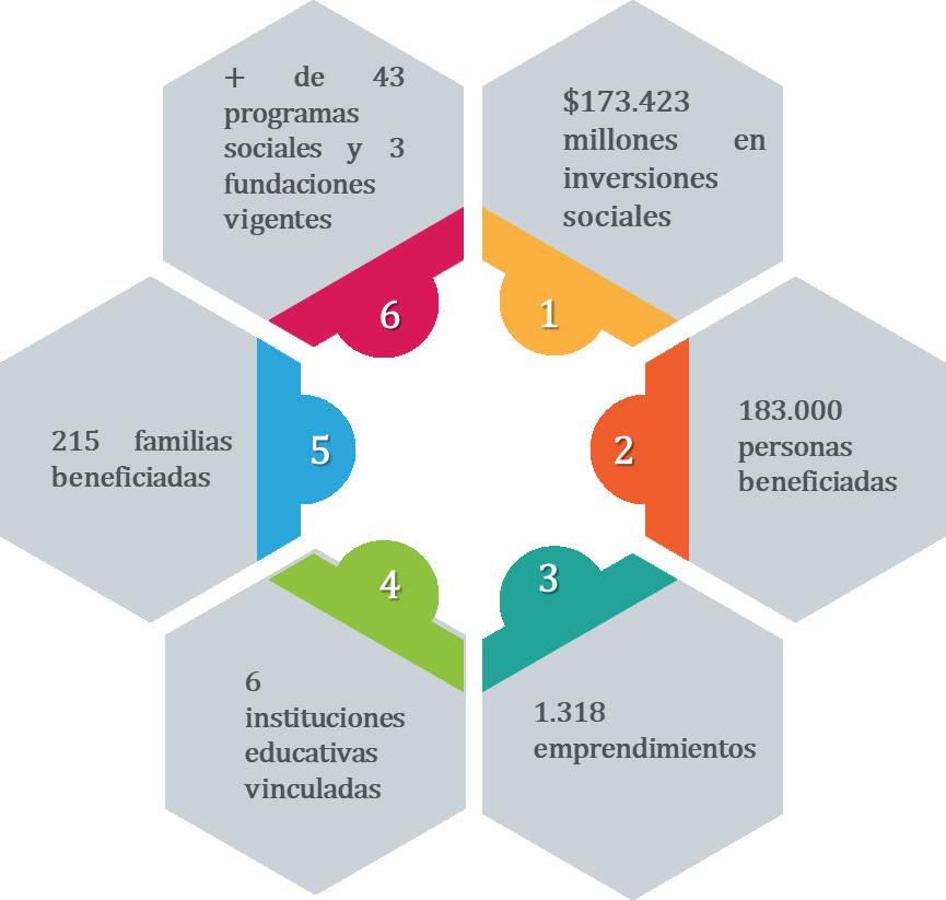 En cuanto a programas de responsabilidad social en los puertos colombianos: se han desarrollado más de 43 programas sociales por más de $173.423 millones, con cerca de 183.000 personas beneficiados, y 1.318 emprendimientos apoyados.