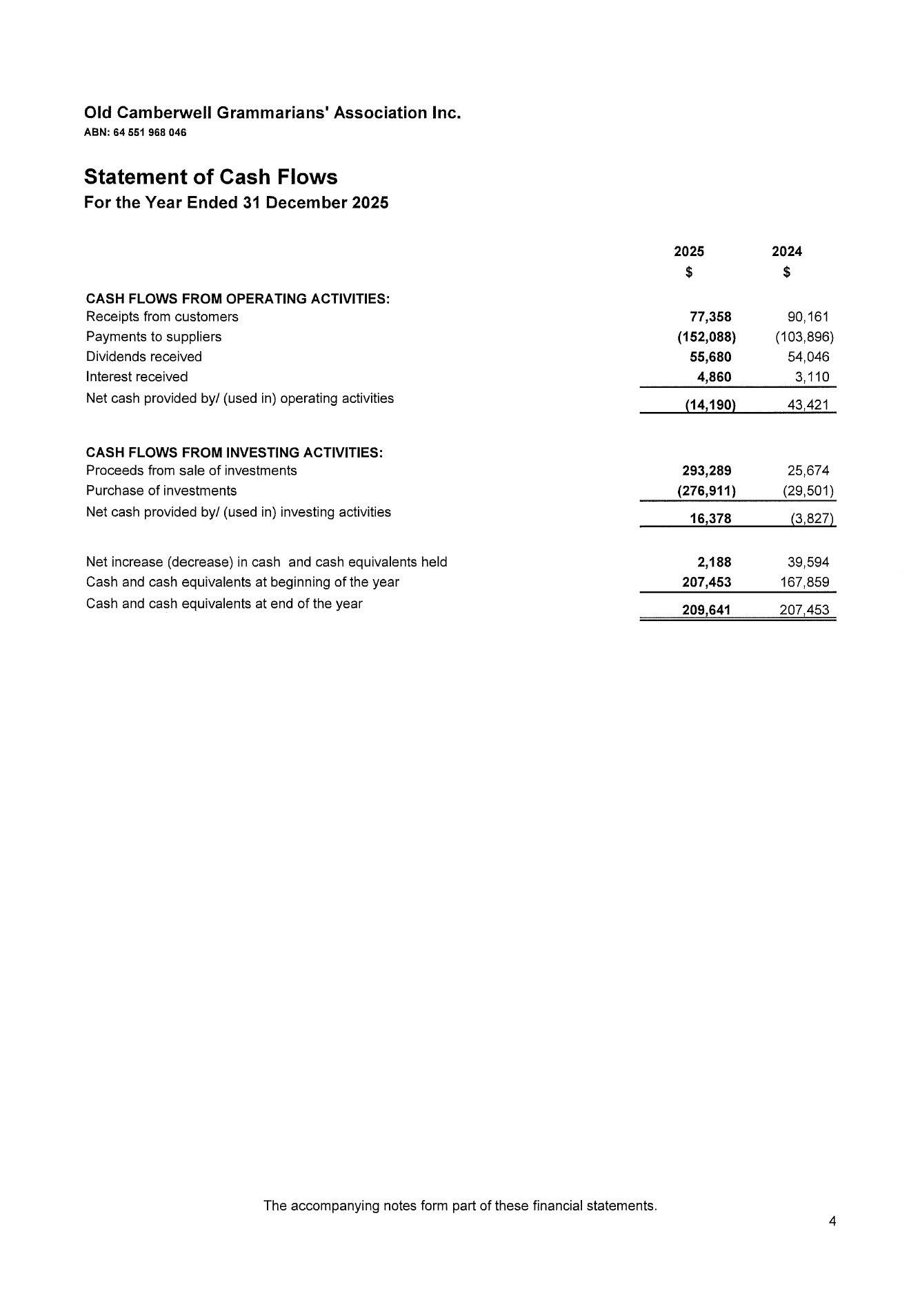 • Income and expenditure were largely consistent with 2023, with the main difference being the increase in receipts and costs associated with the Annual Dinner held in 2024.