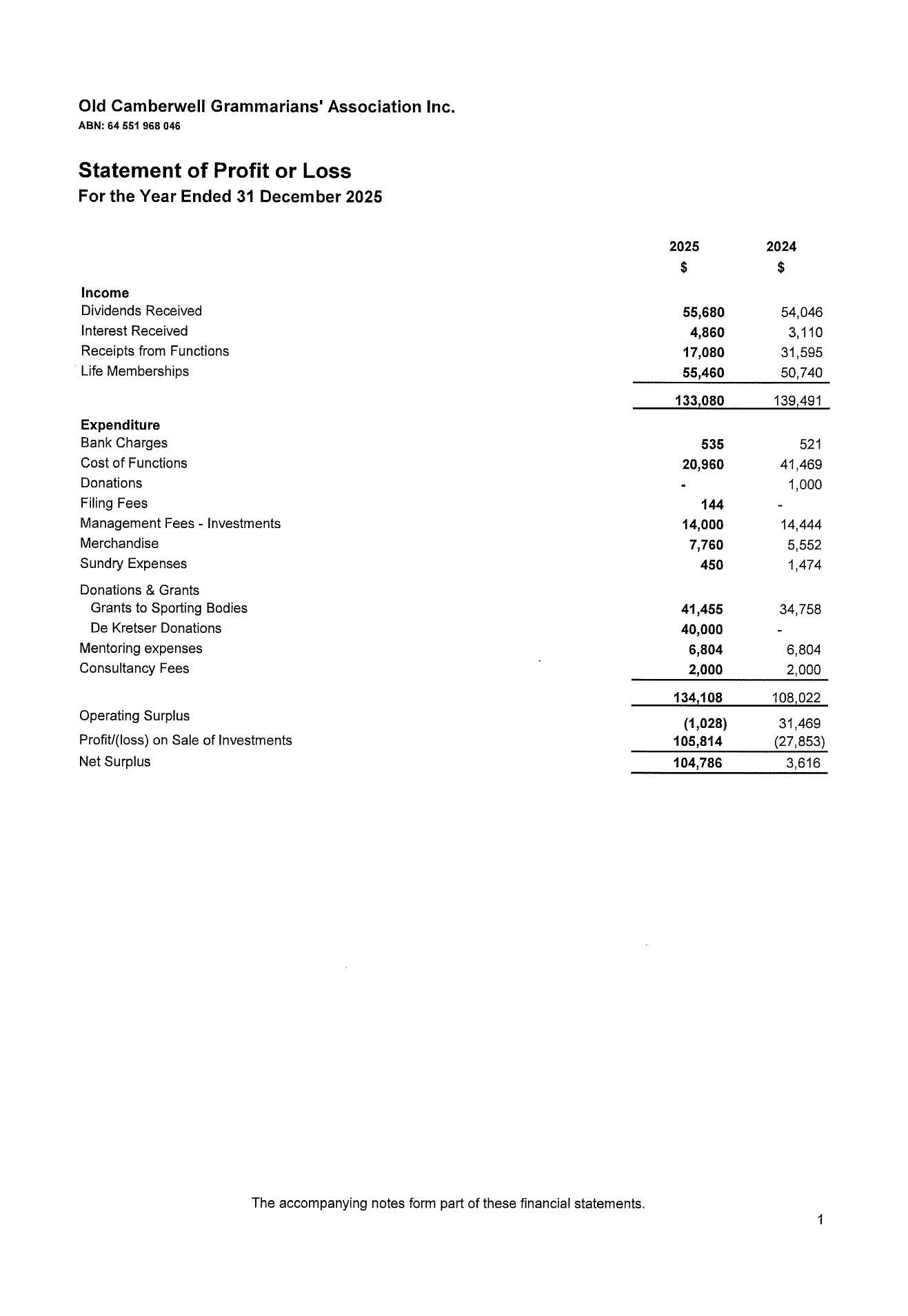 • The OCGA generated an operating surplus of $31,469. However, due to the decision to dispose of some underperforming stock holdings, we incurred realised losses on investments totalling $27,853, resulting in a net surplus of $3,616 for the year.