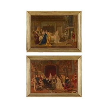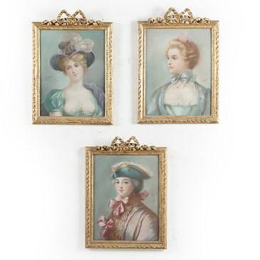 Lotto di tre acquerelli con ritratti settecenteschi. Fine XIX secolo