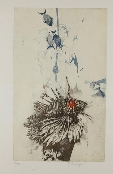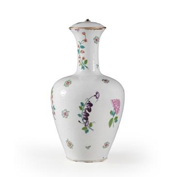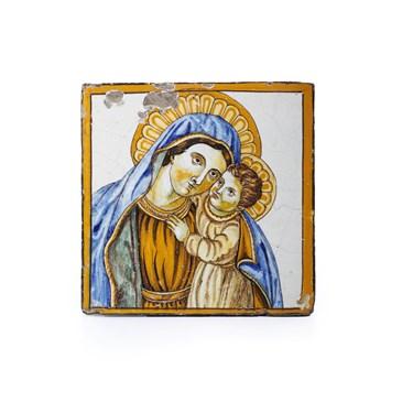Decoro a girali floreali policromi, al retro marca e numero di serie