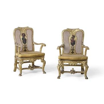 Divano e cinque sedie en suite in legno laccato. XVIII secolo