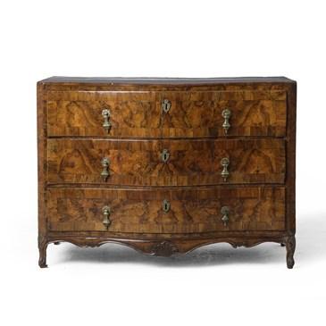 Gambe a lira sagomate, scarabattolo con fronte pannellato e parzialmente lastronato