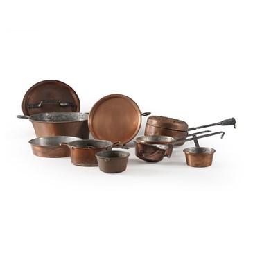 Tra questi un bacile baccellato, un vassoio a foglia, una teiera, una paletta, un vaso, due pentole, due brocche con coperchio