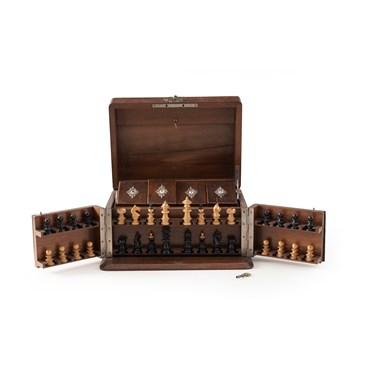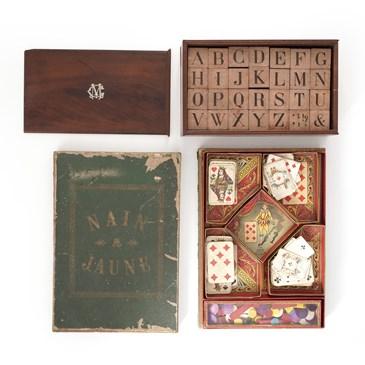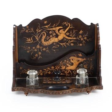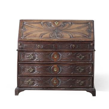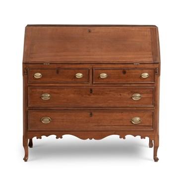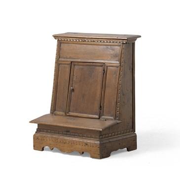Fronte a tre cassetti e ribalta che cela scarabattolo con cassettini e comparti (difetti)