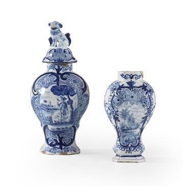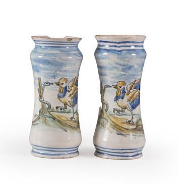 Coppia di albarelli in maiolica invetriata. XIX-XX secolo