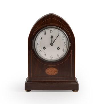 Orologio da tavolo in mogona intasiato. XIX-XX secolo