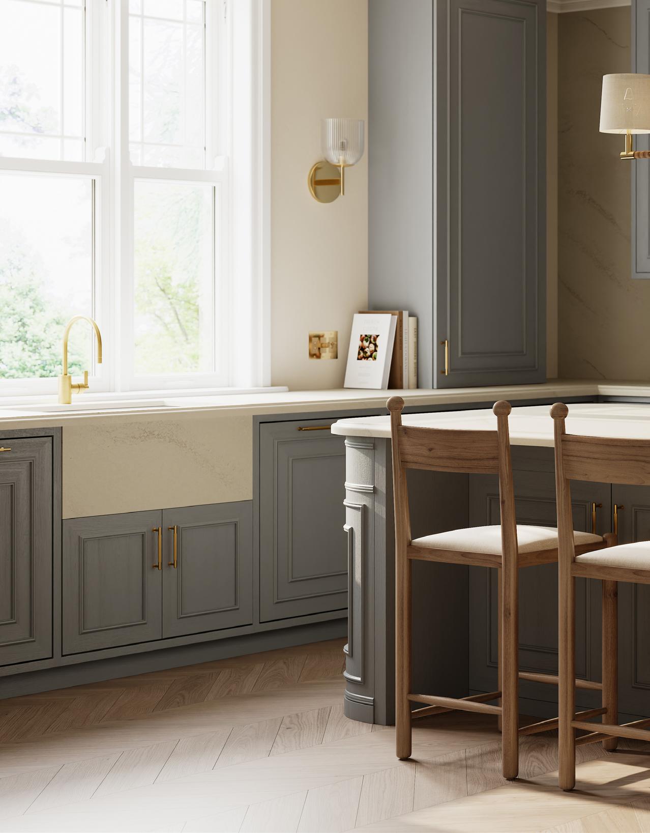 Complete your vision by selecting complementary elements, like paint colors, that enhance your favorite Cambria quartz designs. For guidance, Cambria's Paint Match tool displays expertly chosen Benjamin Moore paint colors that pair well with every Cambria design option.