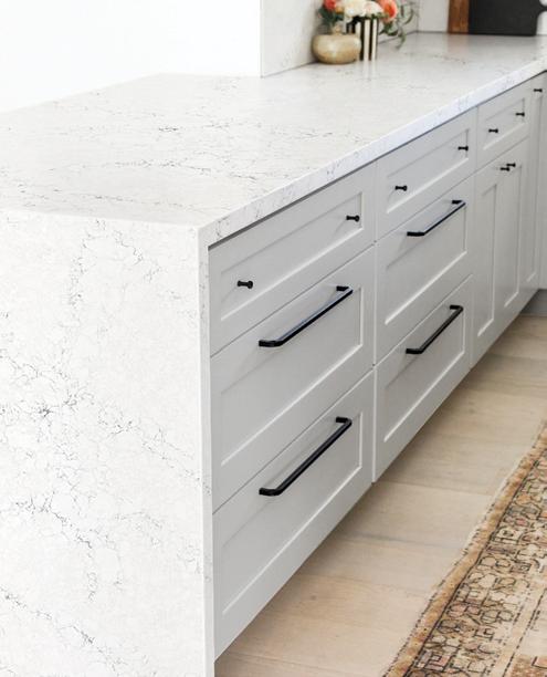 THICKNESS: a mitered edge on a thinner quartz slab creates the illusion of a thicker countertop.