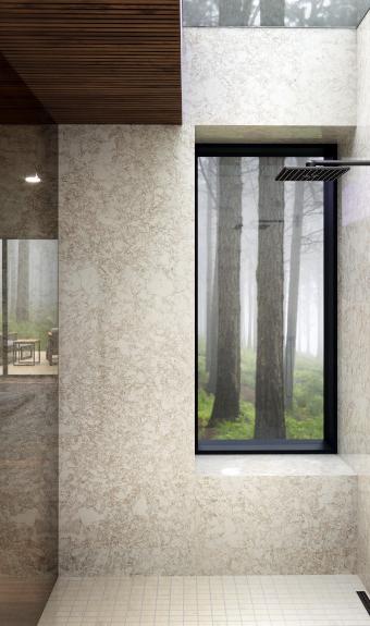 A nonporus material like Cambria’s natural quartz surfaces ensures no moisture or bacteria will ever seep through. Plus, there is no grout to clean and it never needs sealing or scrubbing with harsh chemicals.