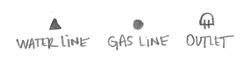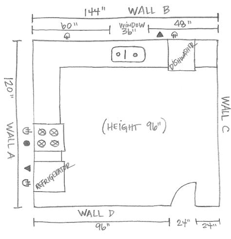 7. Locate any utilities, like water supply and drain lines, electrical outlets, and HVAC vents. If you can’t see the gas line, just measure to the center of the range. Add these locations to your plan.