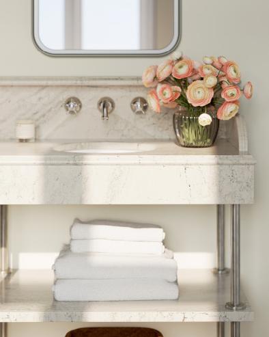Replacing your bathroom vanity top with a Cambria quartz surface instantly updates the look of your bathroom. Cambria’s expansive design palette offers options that complement any style. And unlike many other materials, Cambria resists chips, scratches, and stains.