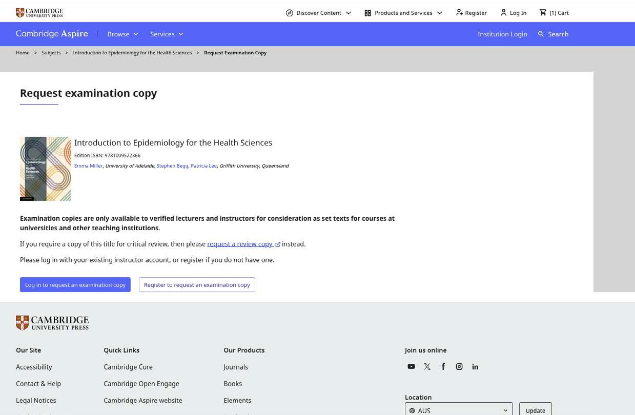 Visit cambridge.org/highereducation, click Request examination copy on any textbook page and complete the online form.