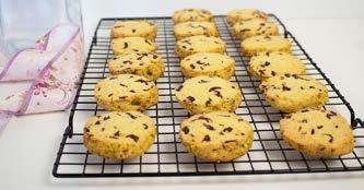 Divide the dough in half. Roll each into a 20cm long log. Roll in the pistachios. Coat well. (At this stage the logs can be wrapped in plastic film and frozen.) Cut as many rounds as required then replace the remainder in the freezer.