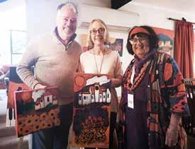 Art passion: from left Andrew Green and Denise Mayhew with Cambridge artist Carole Hughes. Photo: Mary Anne Gill