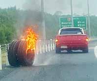 Reader David Thomas sent us this shot from the Waikato Expressway south of Hautapu overbridge – after things clearly got heated for one vehicle. The picture was taken at 5.09pm on Monday.
