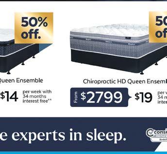 16 | TE AWAMUTU NEWS THURSDAY DECEMBER 8, 2022 63 Maniapoto St Otorohanga | Ph 07 873 8640 www.murrayhun�urnishers.co.nz 220 Alexandra Street Te Awamutu | Ph 07 214 2161 45 Arawata Street Te Awamutu | Ph 07 214 2244 murray hunt furnishers clearance stock (unless otherwise stated) and not to be used in conjunction with any other offer. See in-store for details. We reserve the right to correct errors or misprints. 30 day Comfort Guarantee Ts and Cs apply. on Q Card Flexi Payment Plans. A $50 Annual Account Fee and $55 Establishment Fee for new Q Cardholders or a $35 Advance Fee for existing Q Cardholders will apply. Minimum payments of 3% of the monthly closing end of the interest free period. Q Card Standard Interest Rate applies to any outstanding balance at end of interest free period. Q Card lending criteria, fees, terms and conditions apply. Latitude Financial Services: Normal interest free period. Gem Visa and Latitude Credit Line are provided by Latitude Financial Services. For more information on our terms and conditions please see your nearest store or visit our website bedsrus.co.nz