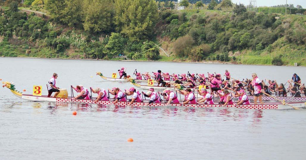 – and competed at the New Zealand Dragon Boat nationals on Saturday. They won the 2000m and 500m Breast Cancer Survivor finals at Lake Karāpiro.