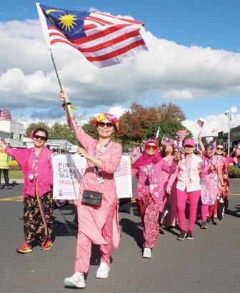 Pink Parade of Nations down Cambridge’s Victoria Street and into Victoria Square for the Opening Ceremony.