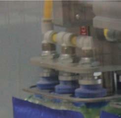 Ramesh Parajuli, Kirsty Parkes and Courtney Lock inside the factory waiting for the bottles to come through the cleaner.