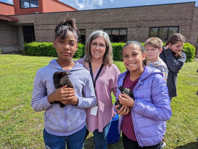 Incelebrationoffinishingtheirnovel,Camden MiddleSchool'sFFAprogramsponsoredbyMrs. KarynChester,broughtgoats,bunnies,chicks, andapigforthestudentstosee!
