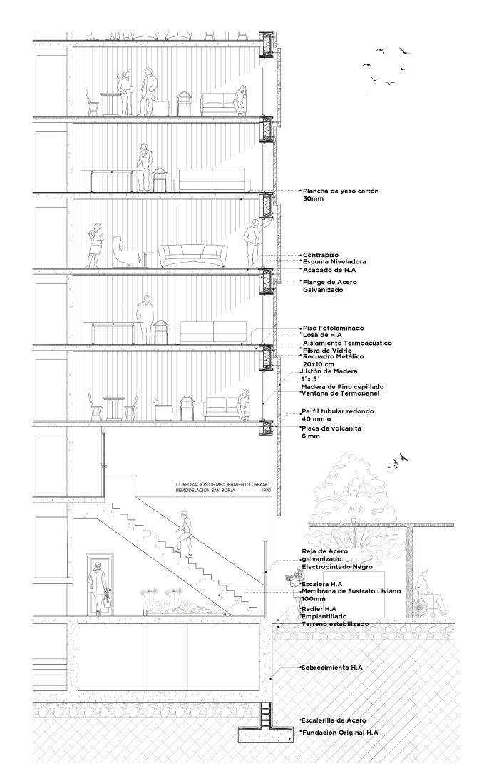 En la misma línea, cada vez es más habitual pensar la construcción desde la reutilización de estructuras preexistentes antes que la obra nueva. Esto queda patente en el trabajo de la oficina francesa Lacaton Vassal y Frédéric Druot en su consigna “No derribar nunca, no restar ni reemplazar nunca, transformar y reutilizar siempre”. Es mediante el uso de envolventes donde por ejemplo estructuras modernas han sido “exorcizadas” de sus males originales y adquirido una nueva dignidad y formas de uso, además de reducir el impacto de la construcción sobre el medio ambiente.