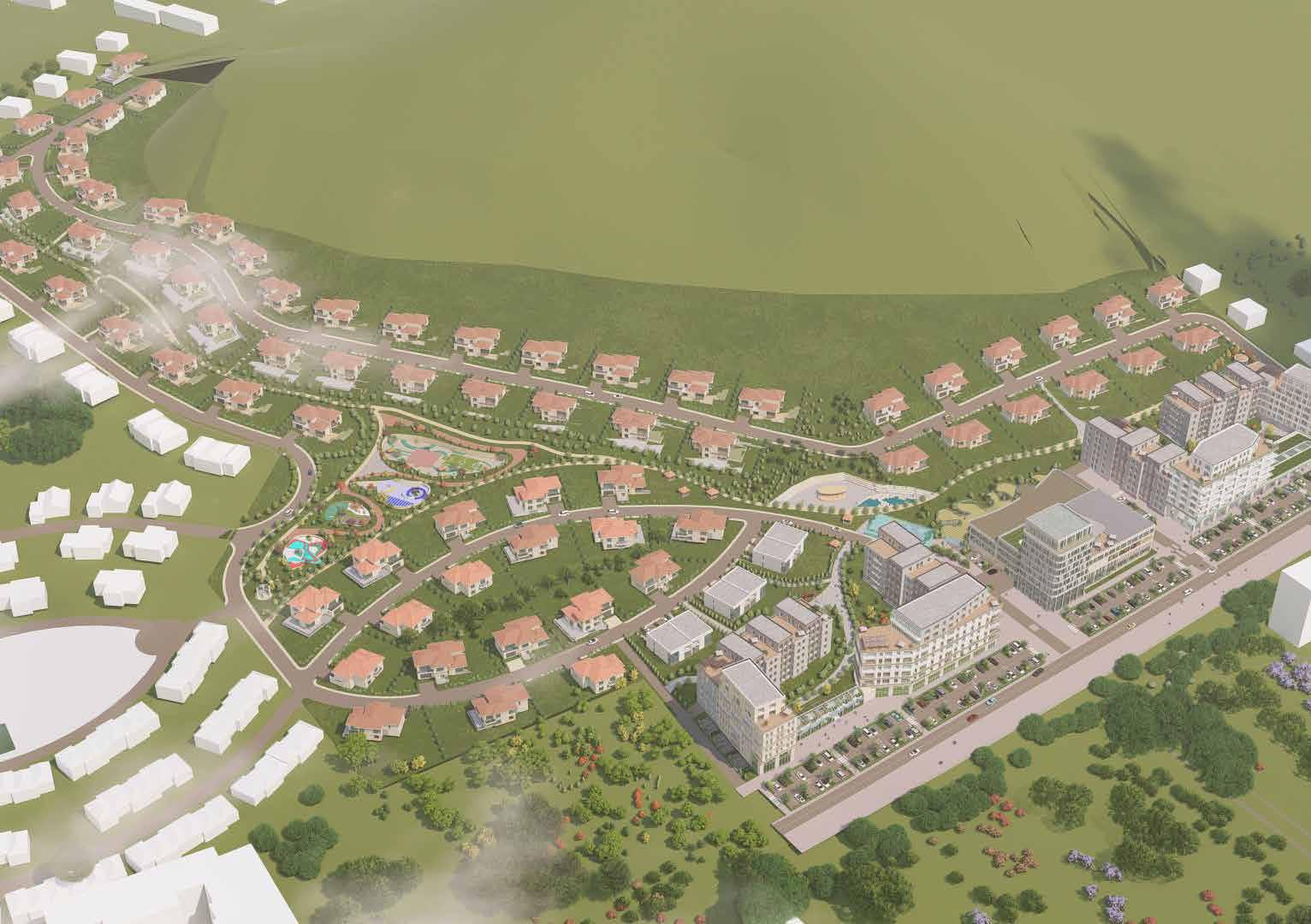 Ensuite la création de thermes permettra de créer l’attractivité hivernale dont le village à besoin. Enfin, il s’agira de lier le moyen paysage avec l’eau. Pour cela deux actions sont programmées: une modification des sens de circulation dans le centre-bourg et l’aménagement de nouveaux parking à l’extérieur d’une part et la requalification des places du centre-bourg d’autre part. Pour finir, il faudra faire rentrer l’eau dans le petit paysage grâce à l’aménagement d’un îlot. Les immeubles insalubres du village seront réhabilités en hôtel pour les thermes.